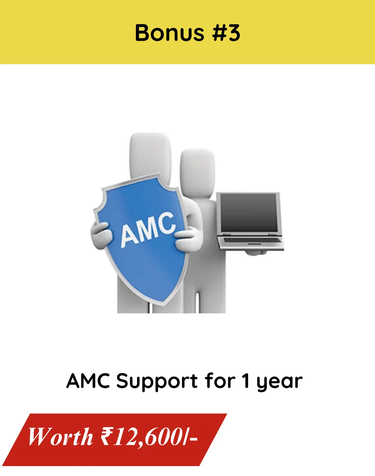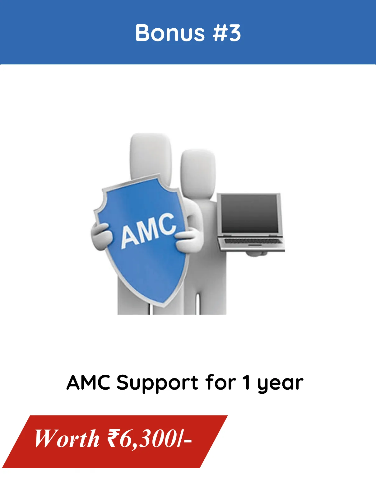 Get Free Bonus Worth ₹ 16,800 + 1 Year AMC Worth ₹ 6,300